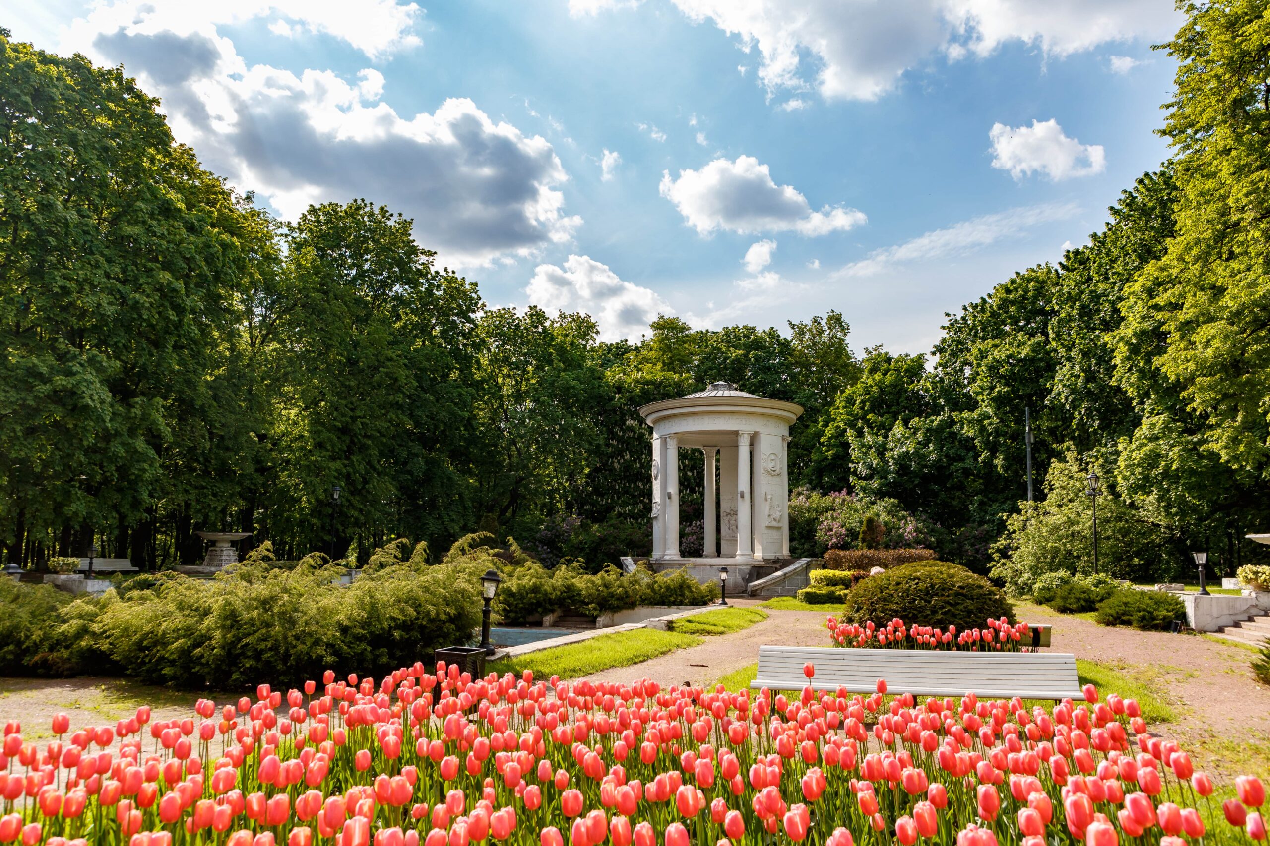 Появился в XVIII веке как часть усадьбы князей Юсуповых и долгое время оставался закрытым частным пространством. Сейчас это аккуратный городской сад с прудом, островом и мостиками. Газоны аккуратные, всегда чистые, но не везде разрешено сидеть, поэтому чаще люди располагаются на лавках или у кромки пруда.