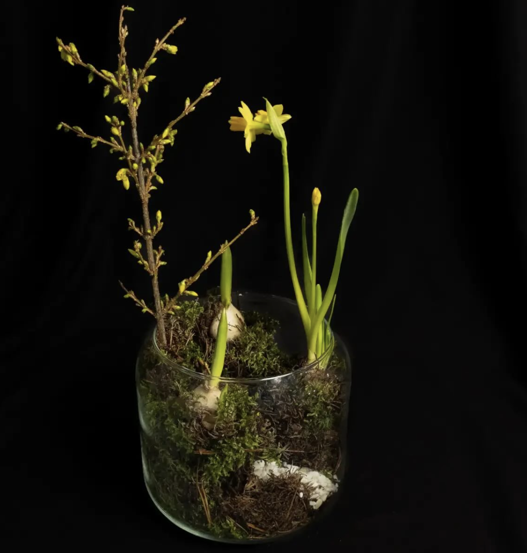 🌸 Москва, мастер-класс «Первоцветы: весенняя композиция с форзицией и нарциссами», 1–31 марта